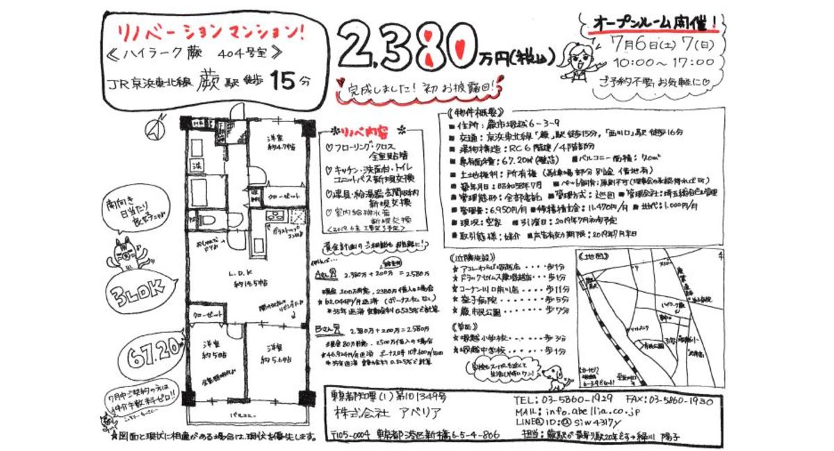 7月6日(土)、7日(日)、リノベマンションでオープンルームやりますよ~。